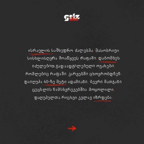 ისრაელის სამხედრო ძალებმა, მასობრივი სისხლისღვრა მოაწყვეს რაფაში. დაბომბეს იძულებით გადაადგილებული ოჯახები, რომლებიც რაფაში, კარვებში ცხოვრობდნენ. დაიღუპა 40-ზე მეტი ადამიანი, ბევრი მათგანი ცეცხლის ნამსხვრევებშია მოყოლილი. დაღუპულთა რიცხვი კვლავ იზრდება.