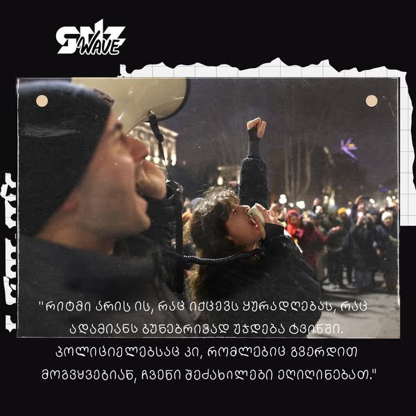 ეს შეძახილები ჯერ კიდევ არ იყო მუსიკალური. მერე დაემატა ფრაზები, მოდიოდნენ ადამიანები, გვეცნობოდნენ, გვთავაზობდნენ ჩასამატებელ წინადადებებს, მერე ვიღაცებს მიჰქონდათ შეკრული ნაწილები და თავისას ამატებდნენ. ჩვენ ვნახავდით, ეხმიანებოდა თუ არა ეს შეძახილები პროტესტს და ვიყენებდით. და ასე, საერთო პროცესში გაიზარდა ეს შეძახილები. მანამდე თუ სამი წინადადება იყო, ახლა თხუთმეტია.