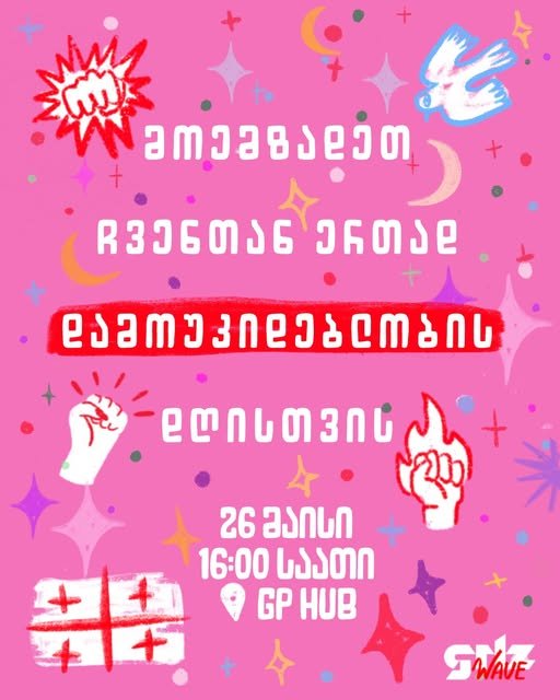 ⋆ .✧˚ გრლზვეივი GP HUB-ის აქტივისტურ სივრცეში ვიკრიბებით 26 მაისს, 16:00 სააზე, რომ ერთად გავამზადოთ პარლამენტის წინა შეკრებისთვის ბანერები.