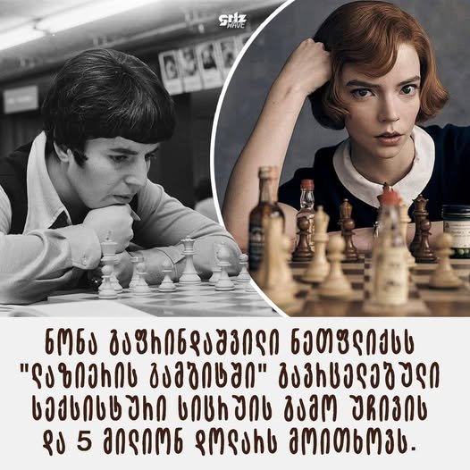 ნონა გაფრინდაშვილი ნეთფლიქსს “ლაზიერის გამბიტში” გავრცელებული სექსისტური სიცრუის გამო უჩივის